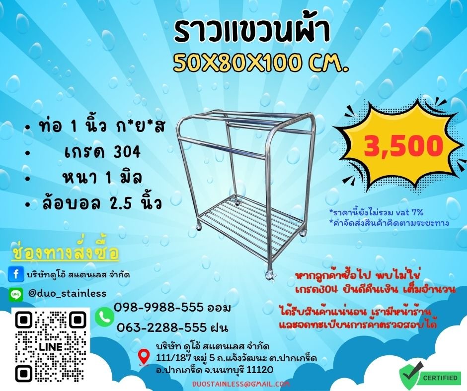 หมวดหมู่ : ราวตากผ้าสแตนเลส ,